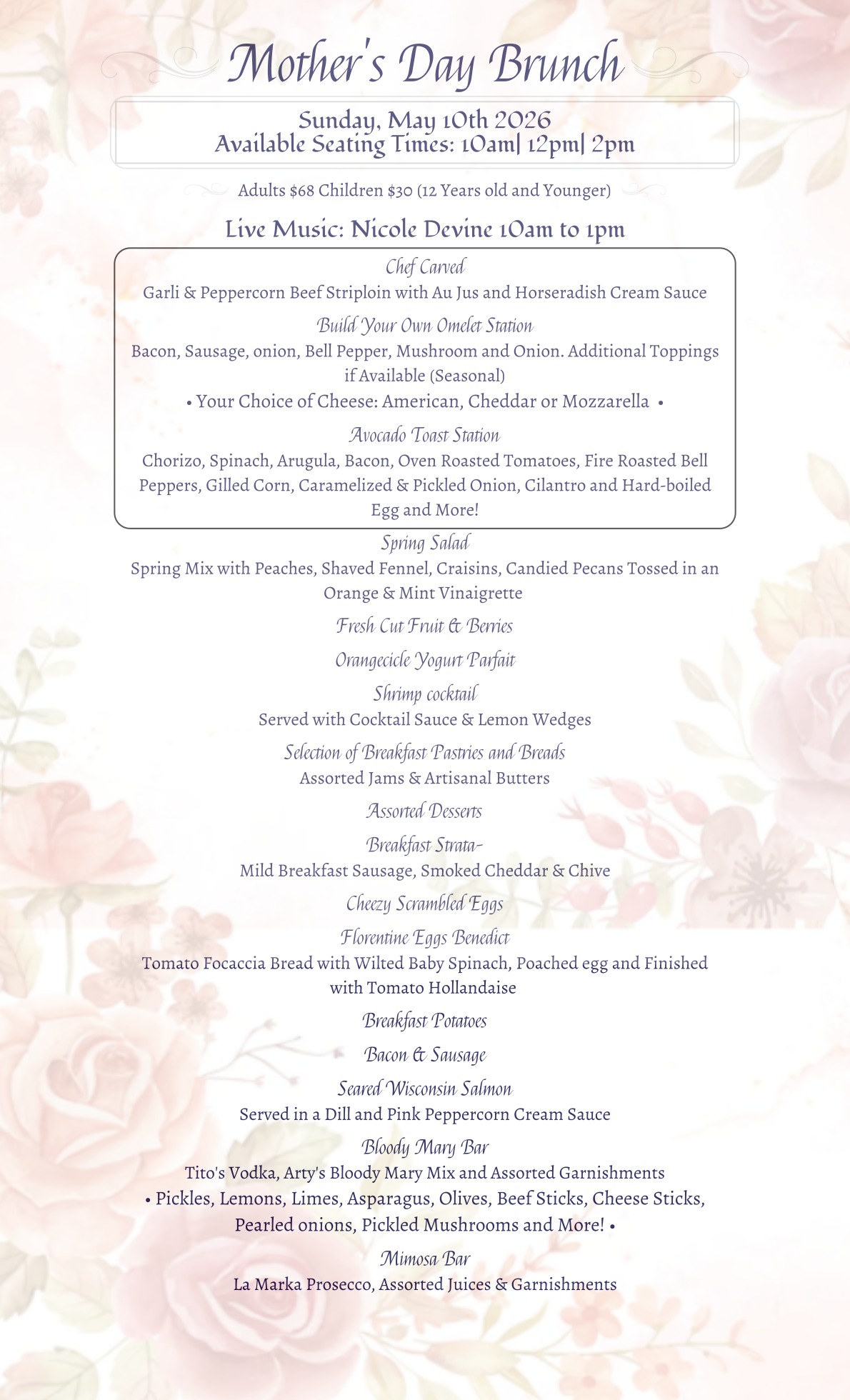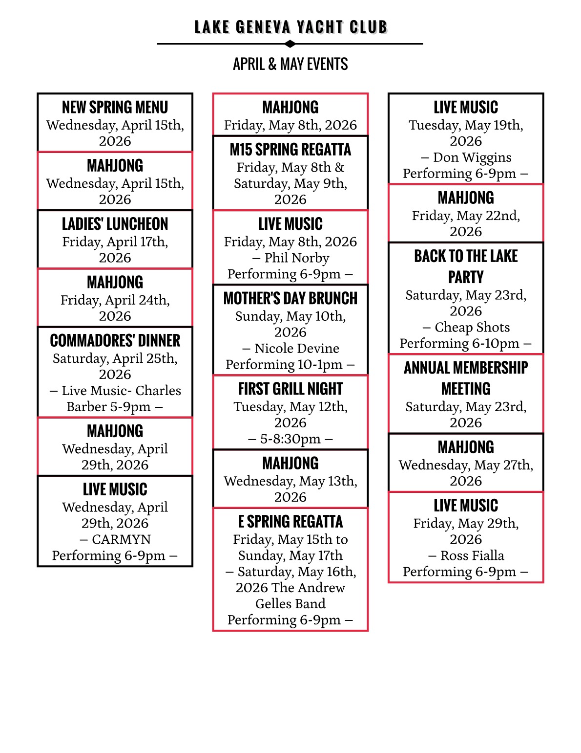 For Complete Dining and Events Calendar Click Here